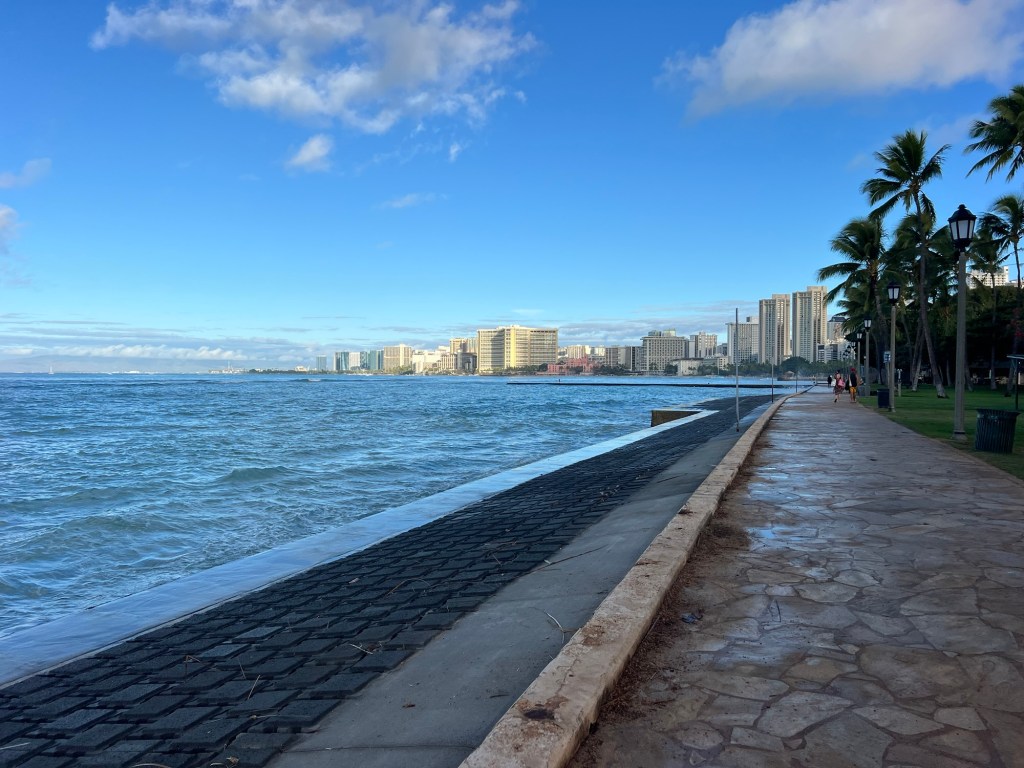 Here’s a image showing my individual transects (am: blue, pm: green) within the team. 3 hours in the morning, and another hour+ after lunch, followed by the long trudge back to the pier. You can see the tighter, more time-consuming track in the morning when we had one less counter (sometimes two less while one was deep in the naupaka) and also some trickier terrain to cover, such as extra pockets of naupaka bushes.